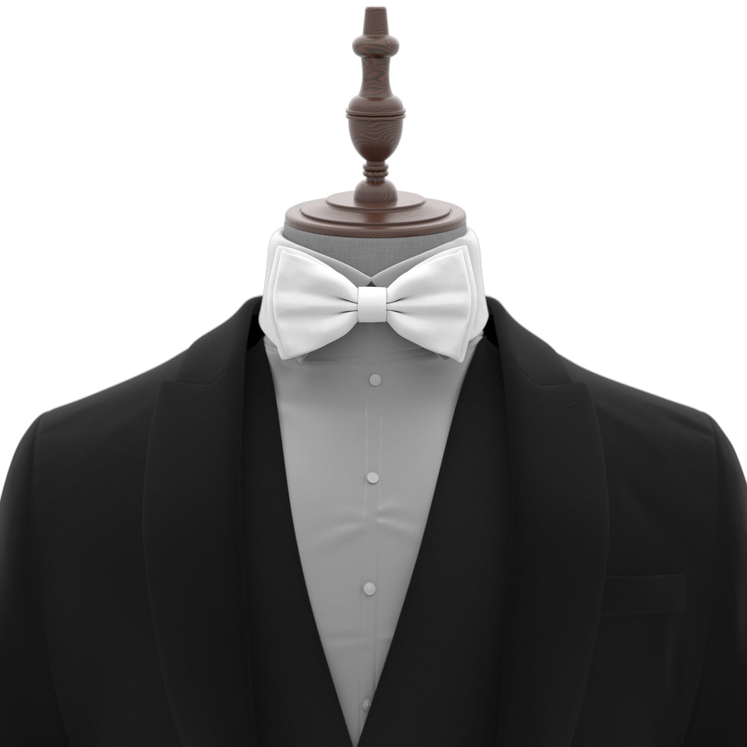 COLOR & MATERIALS: The bow tie is made of high-quality materials; it's 100% polyester composition and has a tiny glossy glint on it. The White color hasn't various names. If you are looking for a warm white, this shade will be a perfect match. Colors are designed to go with any tuxedo, jacket, outfit, or uniform and with shirts.